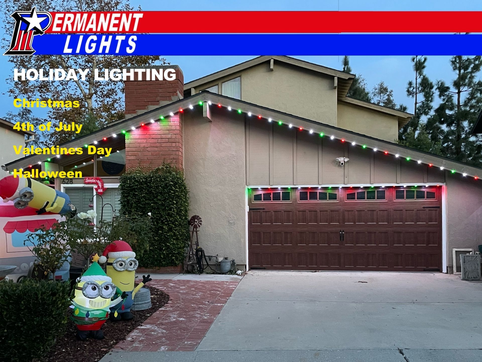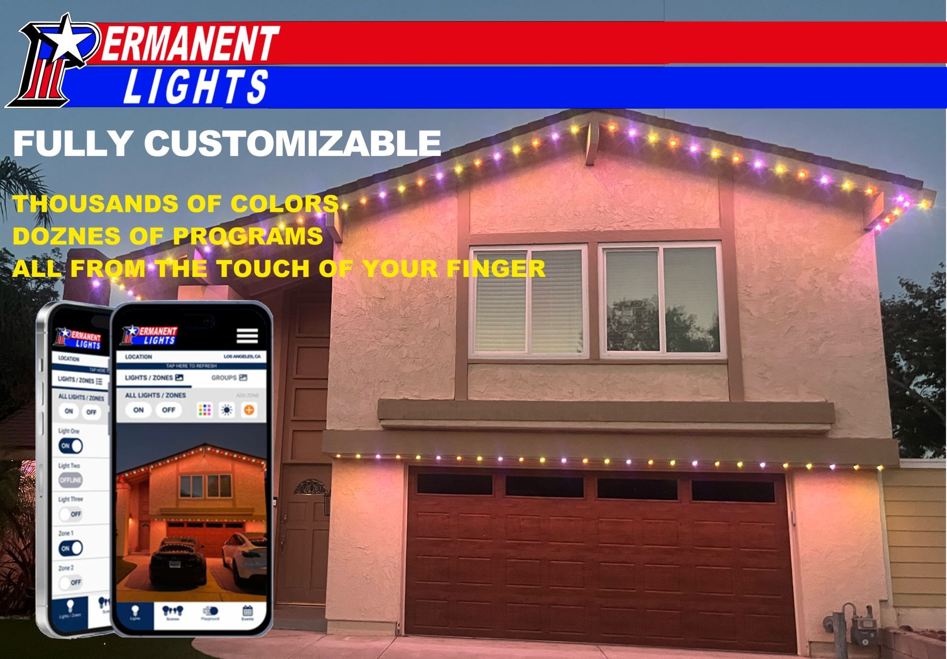 We offer permanent customizable LED lights that are perfect for any season. With our app, you can easily manage your lights from your phone, whether for holiday displays or year-round security and accent lighting. Our lights are energy-efficient, waterproof, and designed to enhance your home’s exterior. We’d love to share how we can brighten your home!